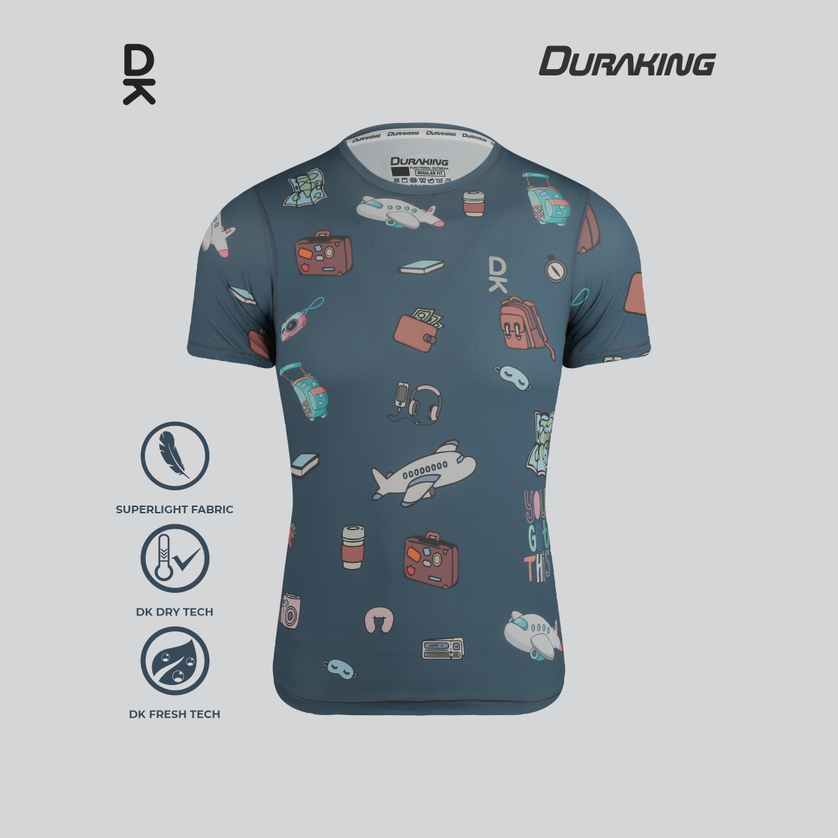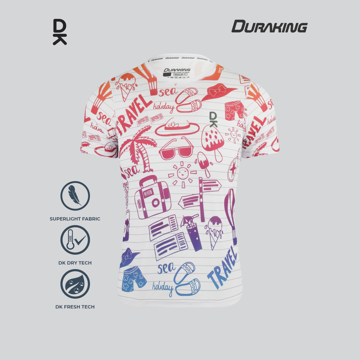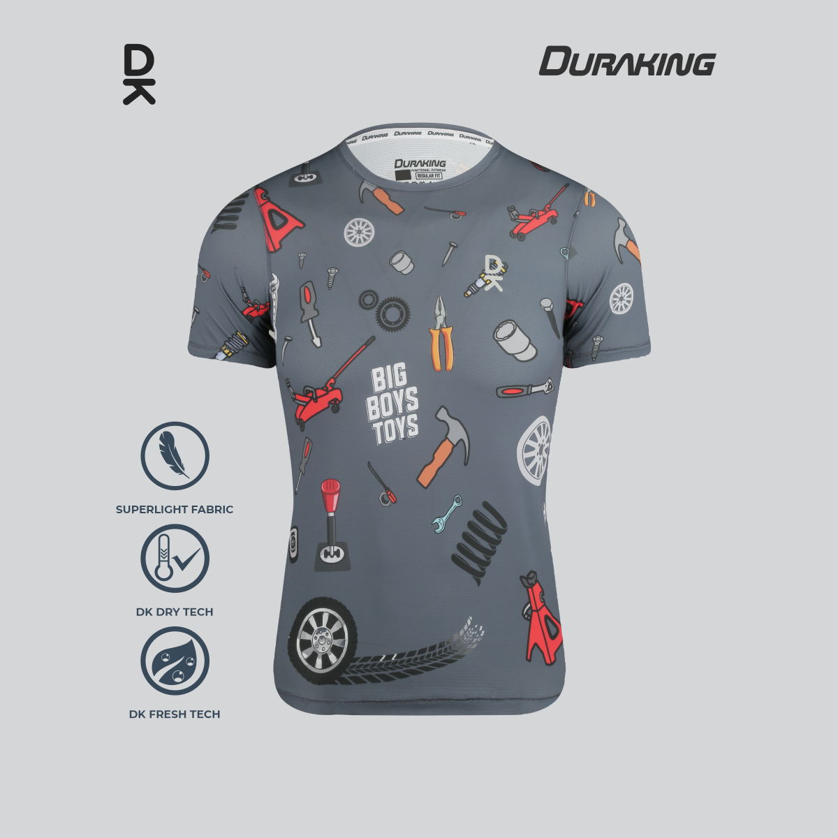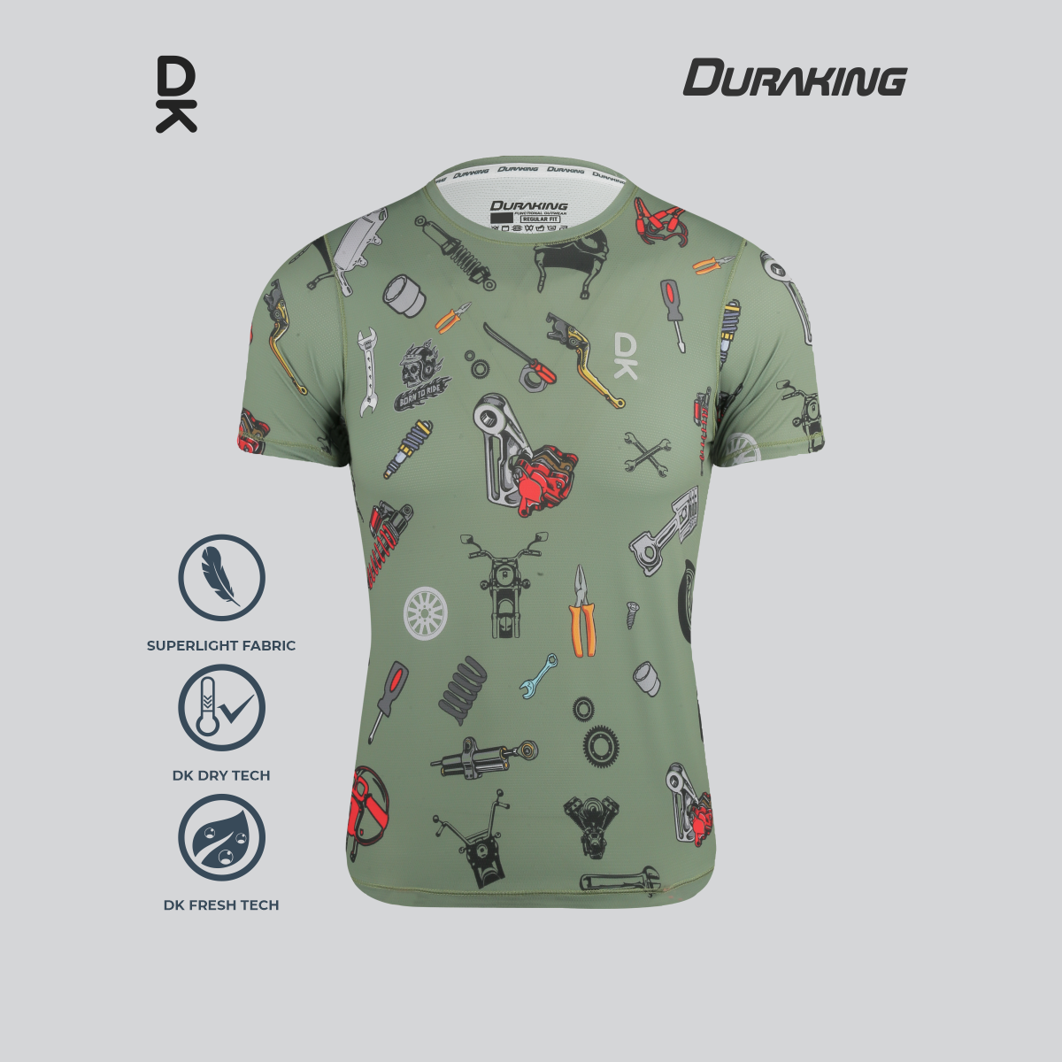 DK Fresh Tech : Teknologi yang mampu menjaga material kain untuk tetap terasa fresh dan tidak bau biarpun digunakan dalam aktifitas berat.